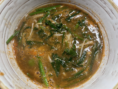 오늘 제가 먹었던 강원도식 추어탕은 국물은 조금 붉고 살짝 걸쭉했지만 기본 맛은 맵지 않았구요, 약간의 콩맛도 느껴지는 담백한 맛이었어요. 가게에 따라 미꾸라지를 어떻게 사용하는가는 조금씩 다른 듯 하지만 오늘 간 곳은 미꾸라지가 갈아서 들어간 곳이었습니다. 그리고 그 안에 토란대나 시래기, 우거지 등 채소들이 많이 들어가고 수제비도 있었어요. 또한, 고춧가루나 강한 양념을 많이 사용하지 않아서 인지 다른 지역에 비해 덜 매운 편이었어요. 매운 음식을 잘 먹지 못하는 사람들에게도 인기가 있지 않을까란 생각을 해봤습니다. 물론 맵게 먹고 싶은 분들은 고추나 마늘을 더해서 조금 더 맵게 드실 수 있었고요.