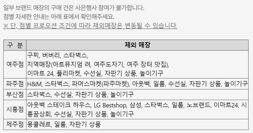 * 정확한 내용은 각 브랜드 매장에서 확인이 필요하며, 브랜드 사정으로 취소, 중단될 수 있습니다.
