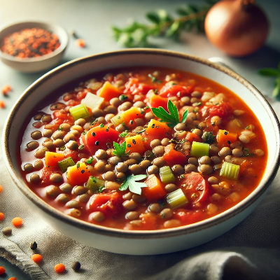 -재료 : 렌틸콩 1컵, 양파 1/2개, 당근 1/2개, 샐러리 1대, 토마토소스 1컵, 물 2컵, 소금, 후추 약간