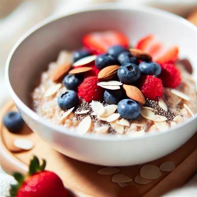 -재료: 오트밀 1/2컵, 아몬드 우유 1컵, 블루베리 한 줌, 딸기 3개, 아몬드 약간