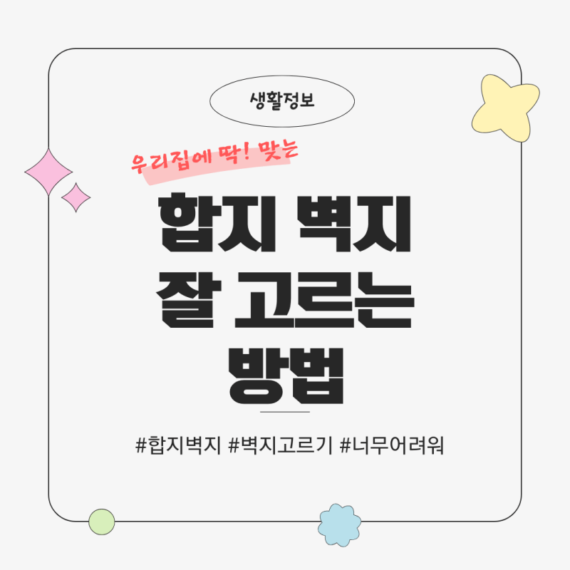 합지 벽지를 선택할 때는 디자인, 품질, 시공 조건, 예산을 꼼꼼하게 고려하는 것이 중요합니다. 특히 디자인은 인테리어의 분위기를 크게 좌우하므로, 패턴과 색상을 신중하게 선택해야 합니다. 또한, 친환경 인증을 받은 제품을 선택하고, 시공 전 조건을 꼼꼼히 체크하는 것이 좋습니다.